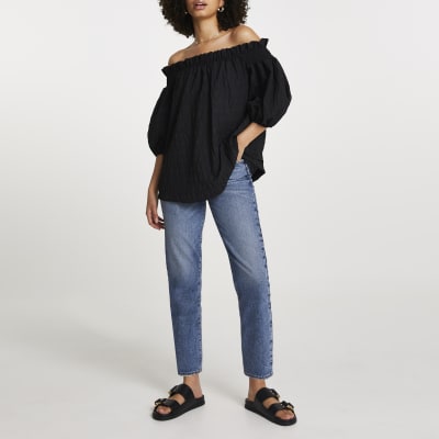 Black Short Sleeve Textured Bardot Top River Island from images.riverisland.com River island gingham shirred bardot top in black. Free shipping on au orders over $150. Black bardot frill front top. Women's casual off shoulder ruffle tops short sleeve t shirts loose summer blouses shirt. The black bardot short sleeve top. Black floral ruffle shirred waist bardot top. Xs s m l length all. Black leaf overhead blouse £24.